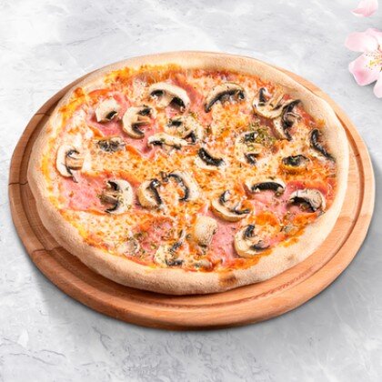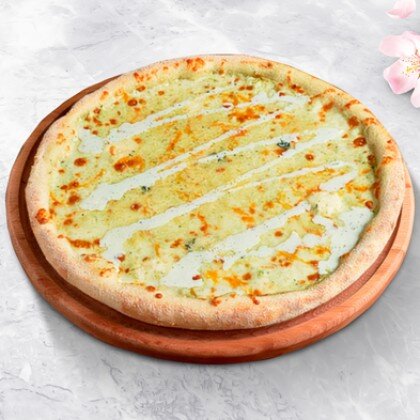 Сливочный соус, лук порей, сыр моцарелла для пиццы, грибы шампиньоны, сыр чеддер, перец черный горошек.