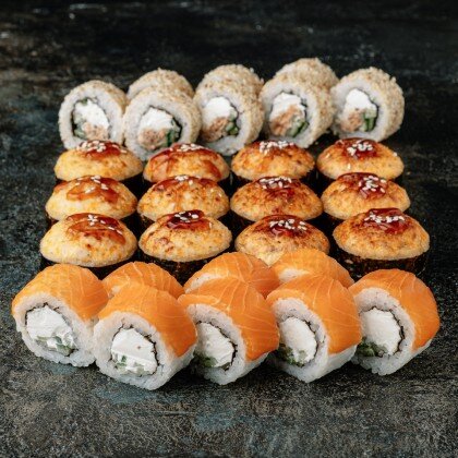 Запеченная калифорния, запеченный угорь, филадельфия гриль, запеченная бонита, унаги соус.